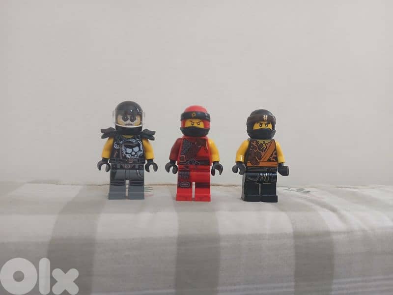three ninjago figs kai from hunted and cole plus a fig from sons of garmadon