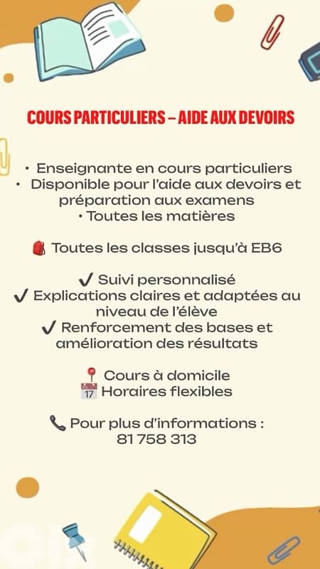 Cours particuliers à domicile 81 758 313