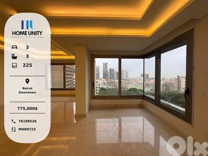 This 225 sqm 3-bedroom apartment, including 1 master bedroom(s) is available for sale in Downtown, Beirut, the property features 3 bathroom(s). The property includes 2 parking spaces. and is situated in a new building. Current condition of the property is Ready to move in.