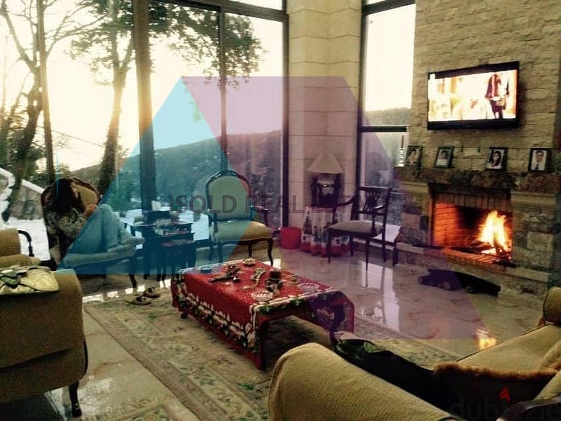 Luxurious furnished 615 m2 villa with a garden having an open mountain/sea view for sale in Keserwan ,920 m above sea level