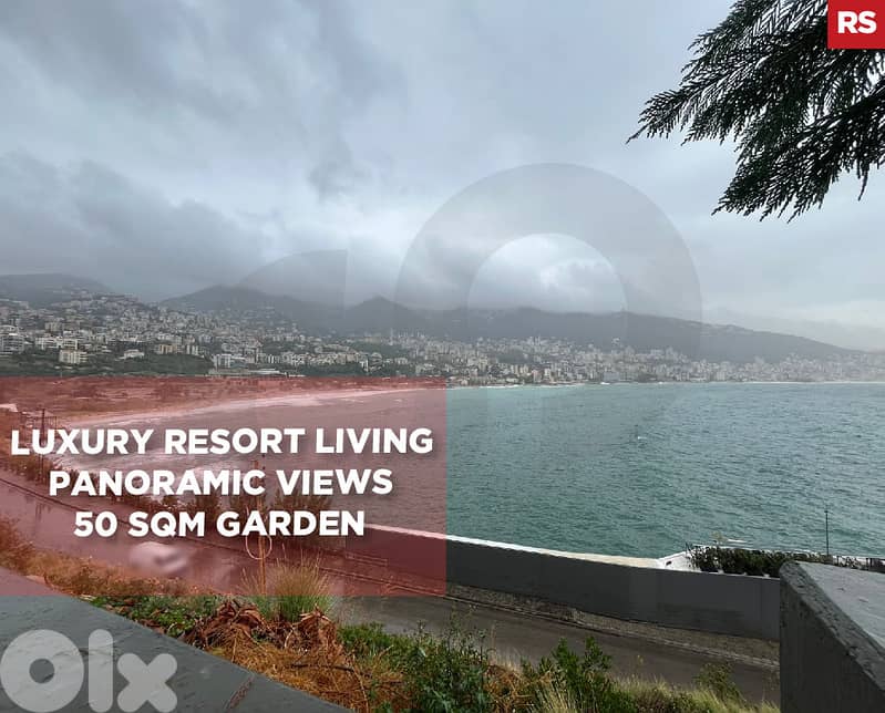 يتميز العقار بإطلالات بانورامية ساحرة على خليج جونيه وهاريسا، ويضم حديقة خاصة واسعة تبلغ مساحتها 50 مترًا مربعًا، مثالية لإقامة حفلات الاستقبال والتجمعات الخارجية.