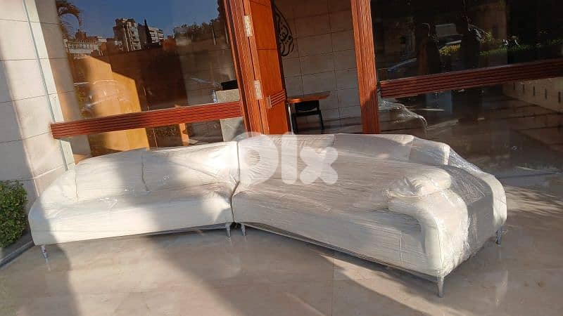 It is a white leader sofa for 6 people. The sofa have been in our house for 10 years, but it have been well maintened.