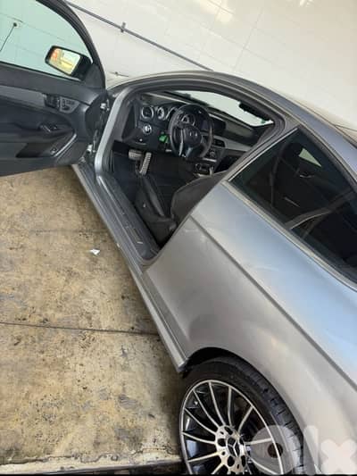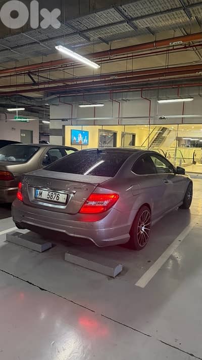 Stunning silver Mercedes C-Class Coupe with sporty AMG look.