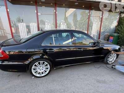 Black Mercedes-Benz E55 AMG in excellent condition. Clean exterior and interior with black leather seats and wood trim. Powerful engine and smooth automatic transmission.
