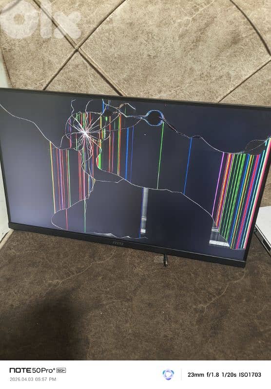 شاشة MSI Gaming 27 inch للبيع (قطع) الموديل: Optix G27C4 الشاشة مكسورة لكن تشتغل بدون أدابتر مناسبة للقطع أو التصليح