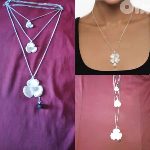 necklace vintage 3 layers3 flowers white