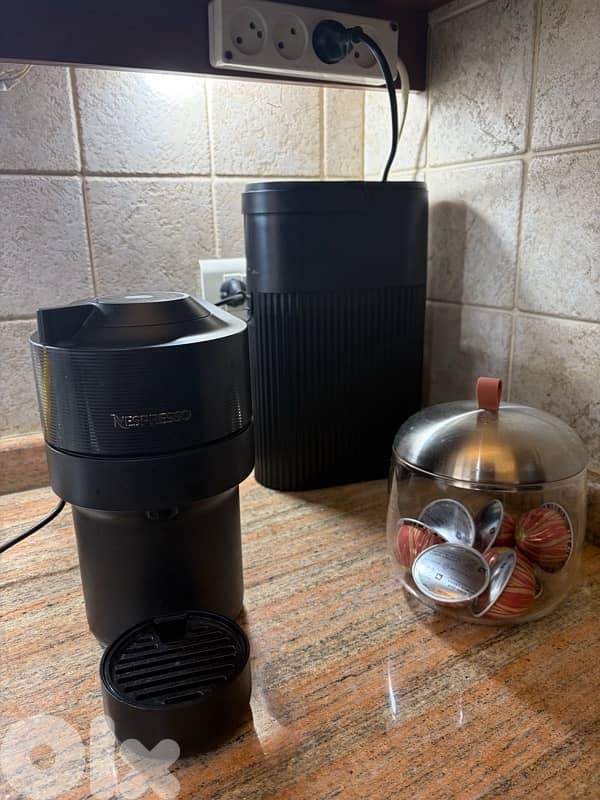 The machine uses Nespresso Vertuo capsules and automatically adjusts brewing settings.