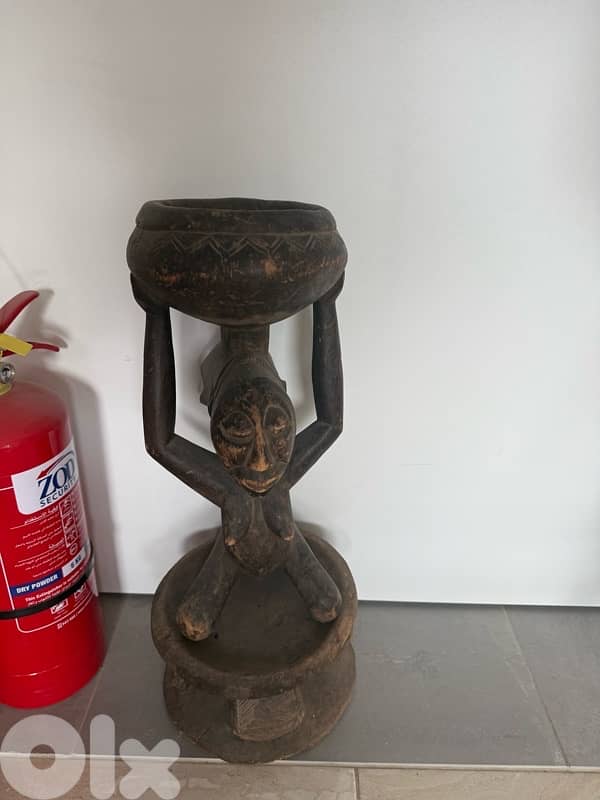 old African wood statue. can be used as key holder, stand alone decorative item or candy holder etc…