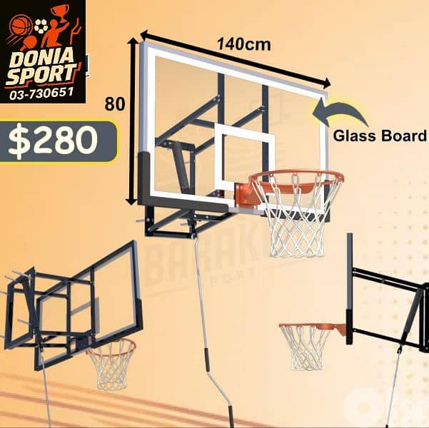 240$ mounted basketball hoop ( Tempered glass)