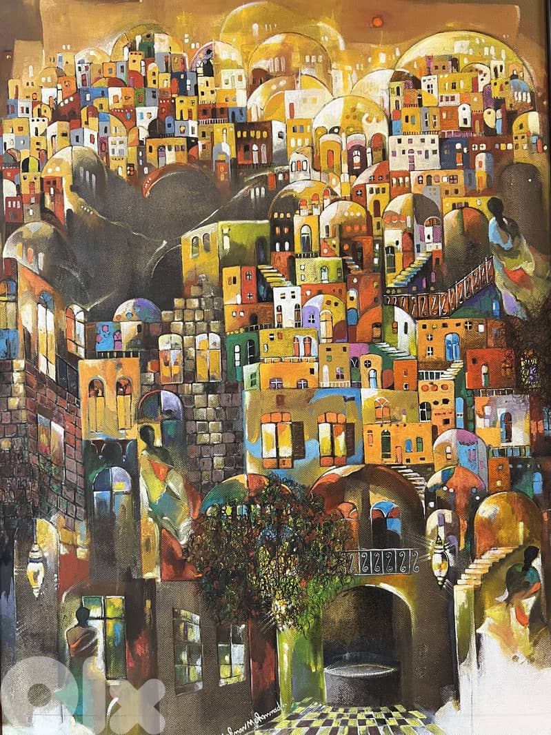 City scene, acrylic, 70x50cm purchassed in 2018 from artist. Pristine condition.