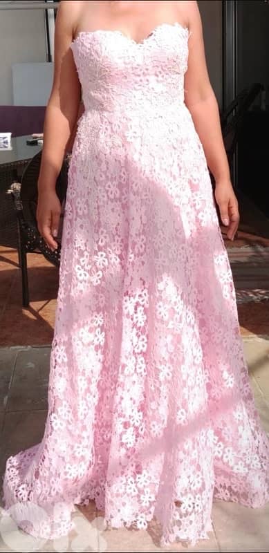 Long pink wedding dress worn once in very good condition.