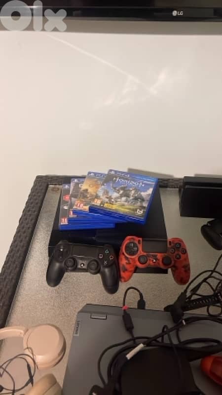 -PS4 Fat 1 TB + 2 controllers + 4 games bundle -All cables included -Games: Call of Duty WWII, Horizon Zero Dawn, Assassin’s Creed Origins, Mortal Kombat XL -200$