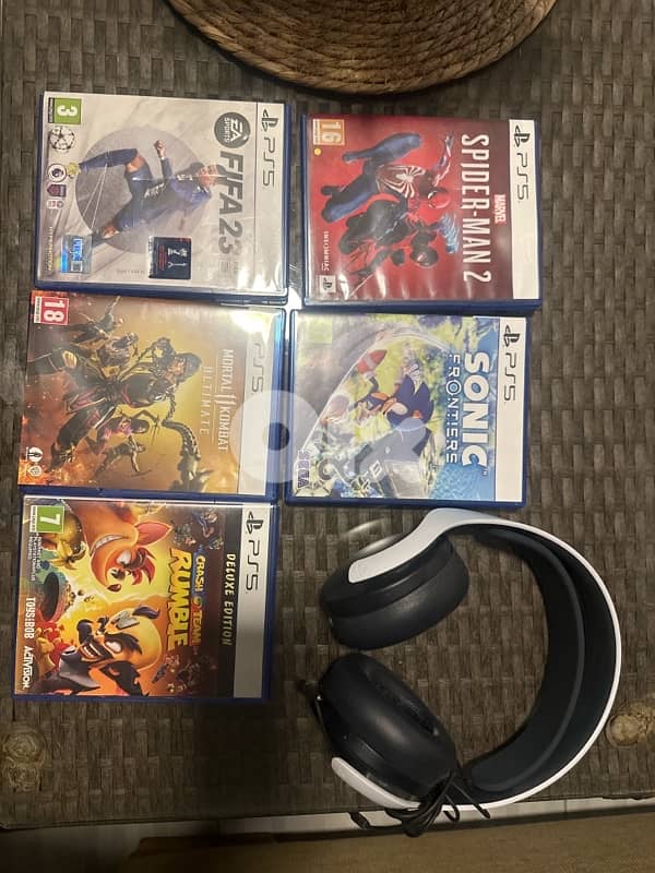 5 games like new - each 22$ headset like new rarely used 40$