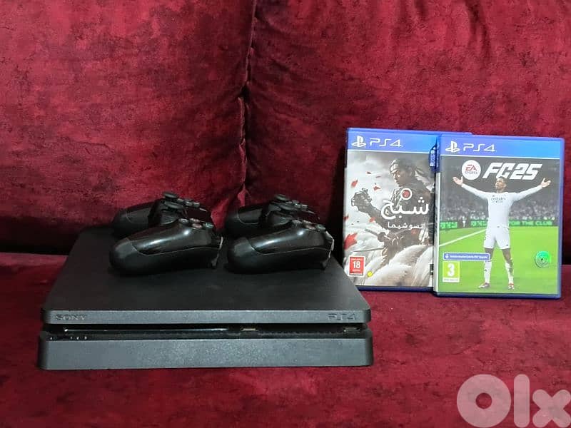 ps4 slim 1tera kter ndefe feha 2original consoles w hdmi original w kel wasleta w 2 discs fc25 & ghost of tshuima