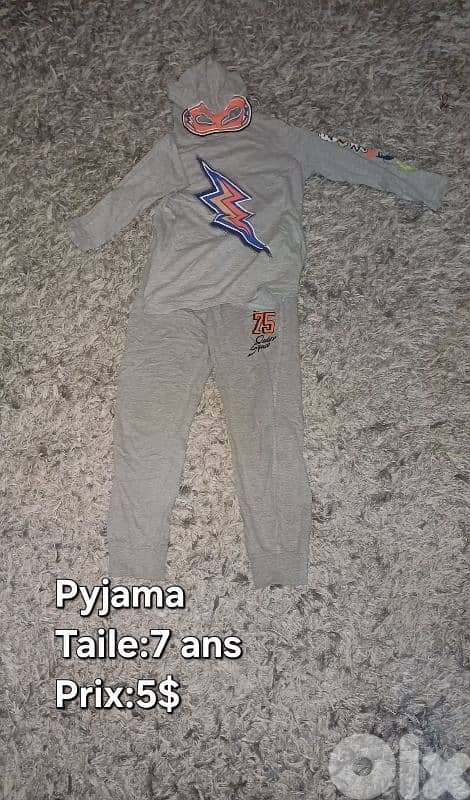 pyjama boy 7ans 5usd