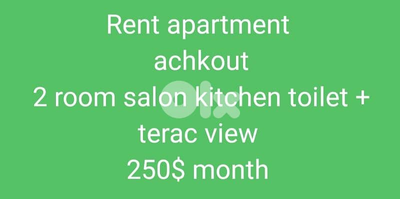 USD 275LL 275Rent apartment ajaltoun 2 room salon kitchen toilet view sea21100 SQMAjaltoun, Keserouan2 hours agoVerified