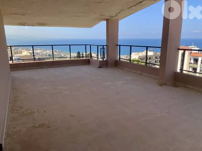 A large terrace with sea and mountain view