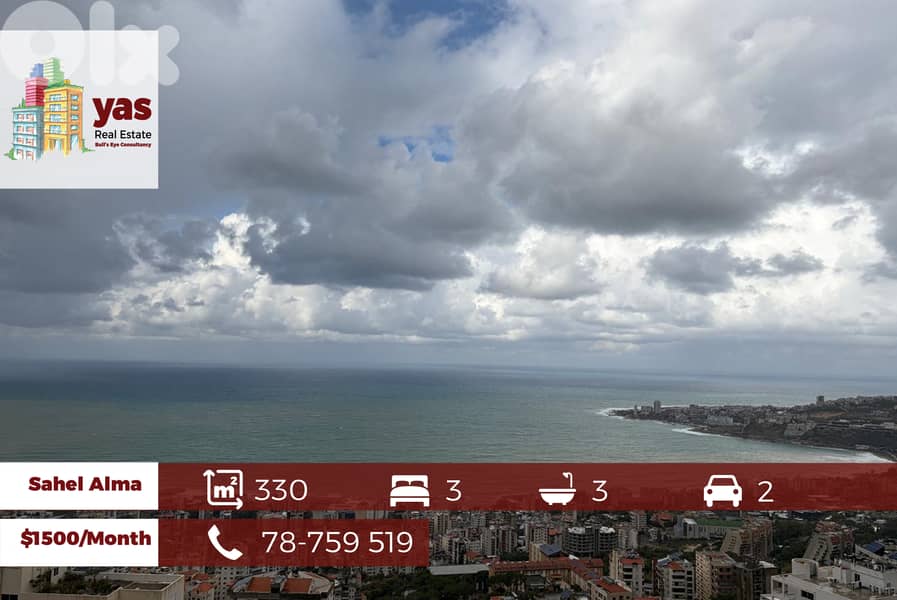 Spacious, well maintained flat nested in a calm area in Sahel Alma | Wide / quiet street close to all facilities & main roads | Stone cladding building with a modern architecture | Spacious flat with a perfect condition that features a pool access | Panoramic unblock-able view over the sea | Generous dimensions & partitions | 3 bedrooms | 3 bathrooms | 2 salons | dining | kitchen | entrance | maid corner | 3 balconies | Luxury specs & finishing | A. C Provision | Double Glazing / Walls | Oak Doors | European Tiles | 2 UG Parking | Storage Room | Concierge | Visitors Parking | Rent: 18000$/Yearly Ready to move in Yas Real Estate Bull's-eye consultancy 78759519