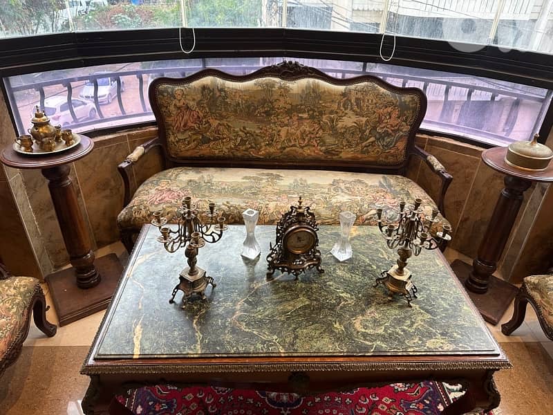 صالون خشب زان شبه مستعمل روميو وجوليات قطعه كبيره ٤قطع مفرد وطاوله وجه غرانيت ونحاس