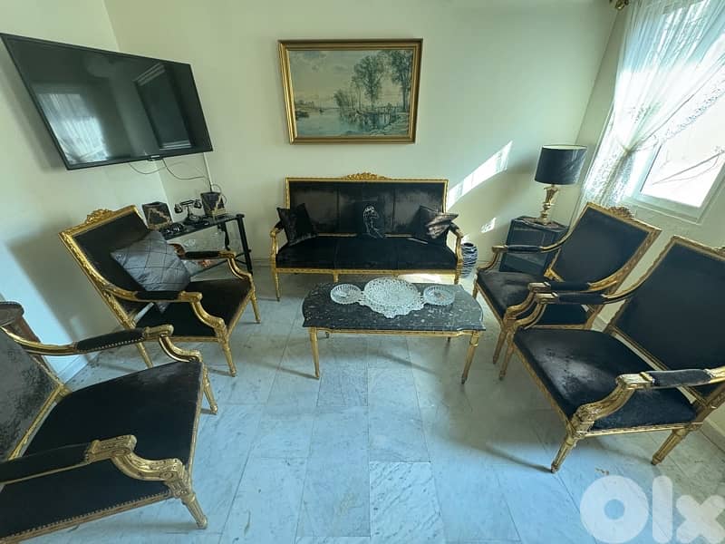 salon steel complete with 3 marble tables