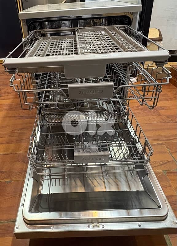 Samsung DW60M5070 (FS/FW) is a 24-inch, 14-place setting freestanding dishwasher featuring 7 programs, 46 dBA noise level, and a 60-minute express wash. It includes a flexible 3rd rack, adjustable upper rack, and a Hygiene option (