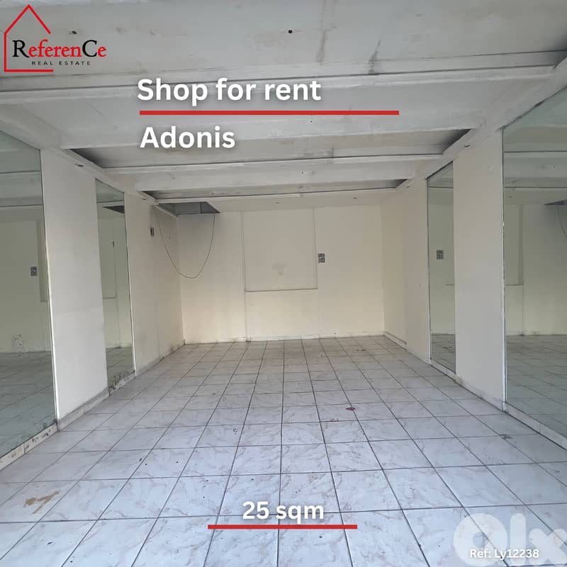 This shop located in a prime location at adonis , 25 sqm , ready to start your business , multipurpose use , available for rent