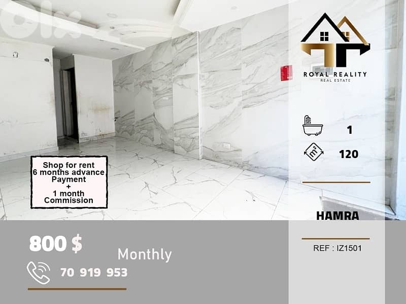 A 120 sqm retail shop available for rent in a prime Hamra location, offering excellent visibility and high foot traffic. Ideal for a variety of commercial uses.