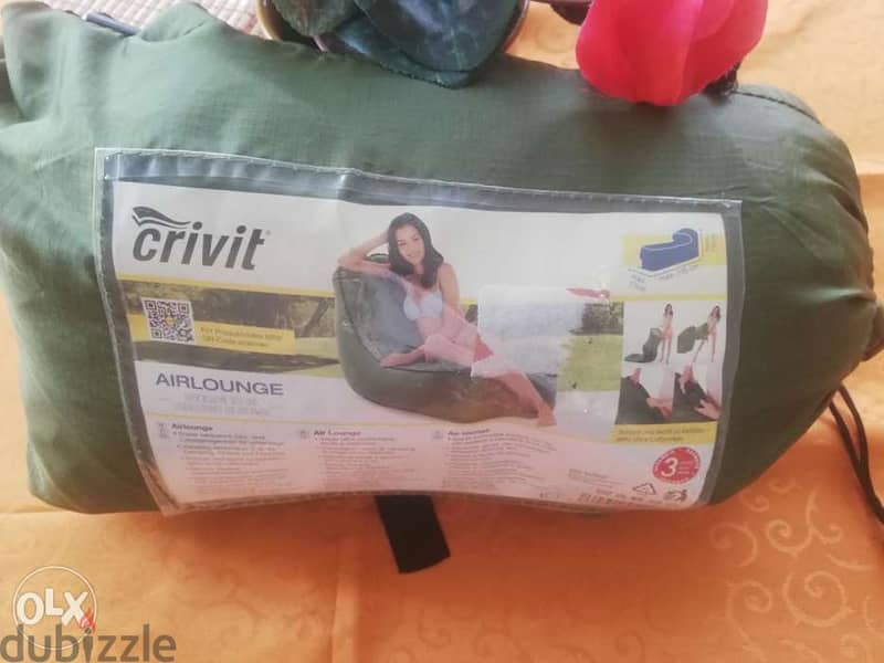 Canapé lounge gonflable +sac à dos lavable Dimensions gonflé 135×77×75cm Charge max 110 kg