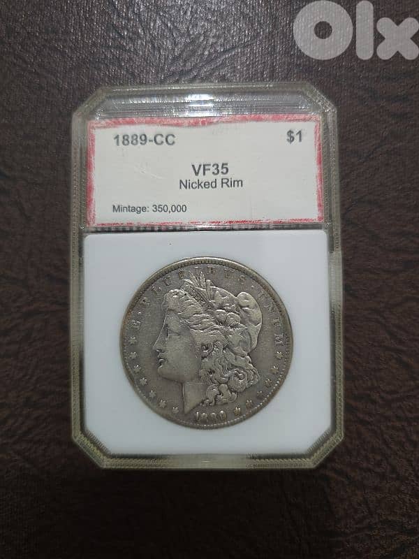 silver Morgan dollar 1889-cc Nicked Rim Mintage 350,000