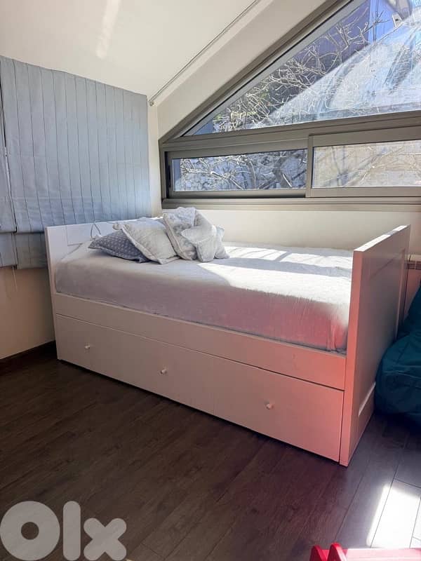 Single bed for sale in excellent, almost new condition. The bed comes with the mattress included, both very lightly used and well maintained. Clean, comfortable, and ready to use right away.