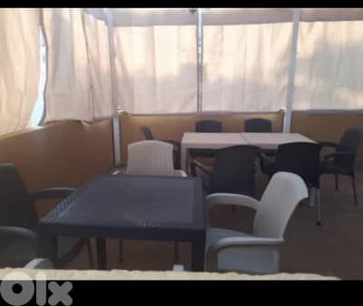Furniture: Tables, chairs, shishas, plates . . .