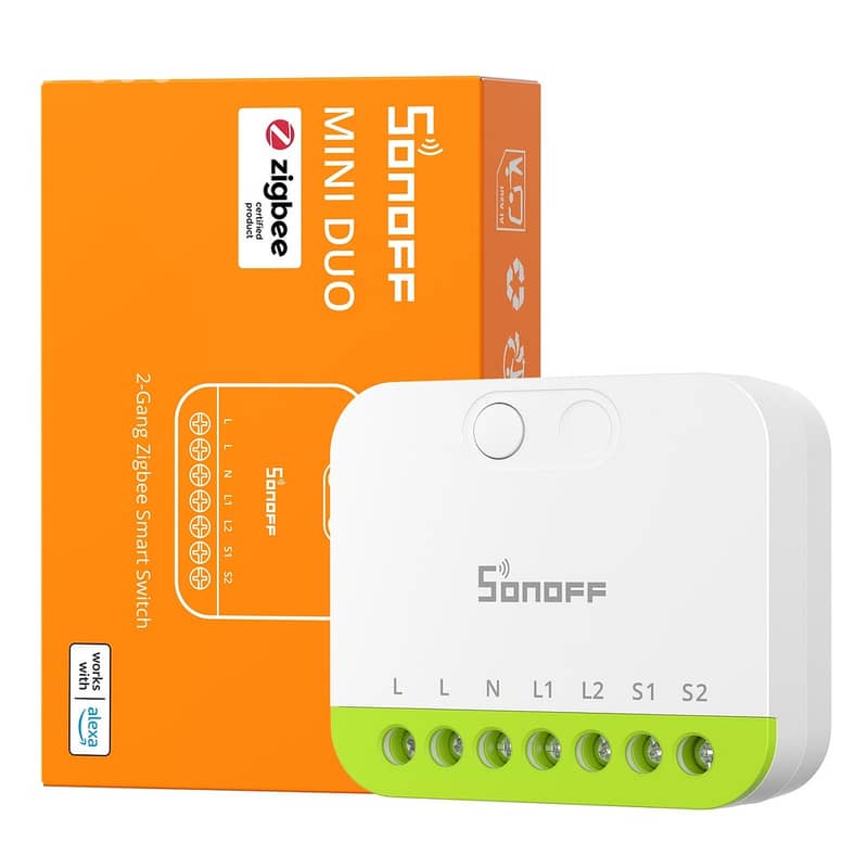The SONOFF MINI-ZB2GS (MINI DUO) is an ultra-compact, dual-channel Zigbee 3.0 smart switch module that upgrades your existing wall switch with smart features – without changing its appearance.