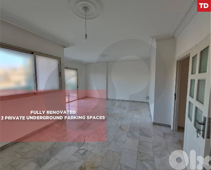 Discover this large and spacious 165 sqm apartment located in Beirut – Barbir. Fully renovated and ready for immediate move-in, this residence offers a comfortable and modern living experience with a bright, well-planned layout. The apartment stands out with three private underground parking spaces, a rare and valuable feature in the area. With its generous size, contemporary finishes, and prime location, this apartment is an excellent choice for comfortable living or long-term investment.