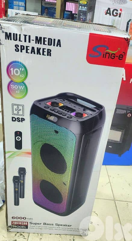 (ONSALE) Speaker 10" double high quality with 2mics wireless, usp, memorycard, bluetooth, radio يوجد توصيل لكافة المناطق اللبنانية