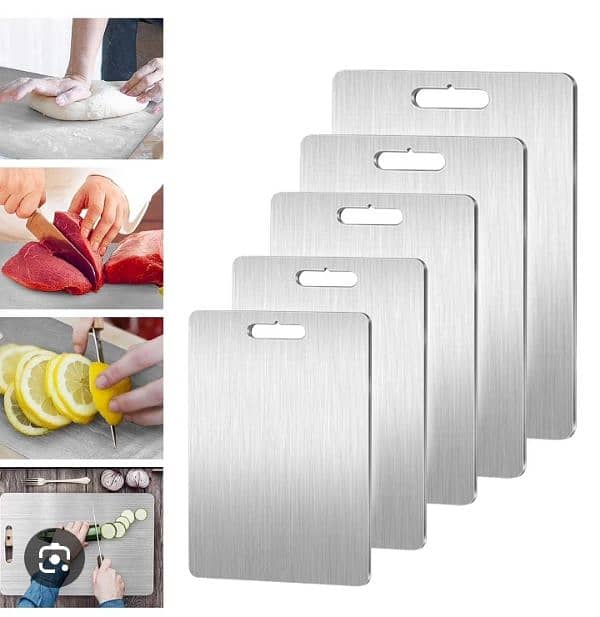 excellent stainless steel cutting boards small 5$ big size 8$ kindly DM for orders delivery available all over Lebanon 2_4 working days 4$