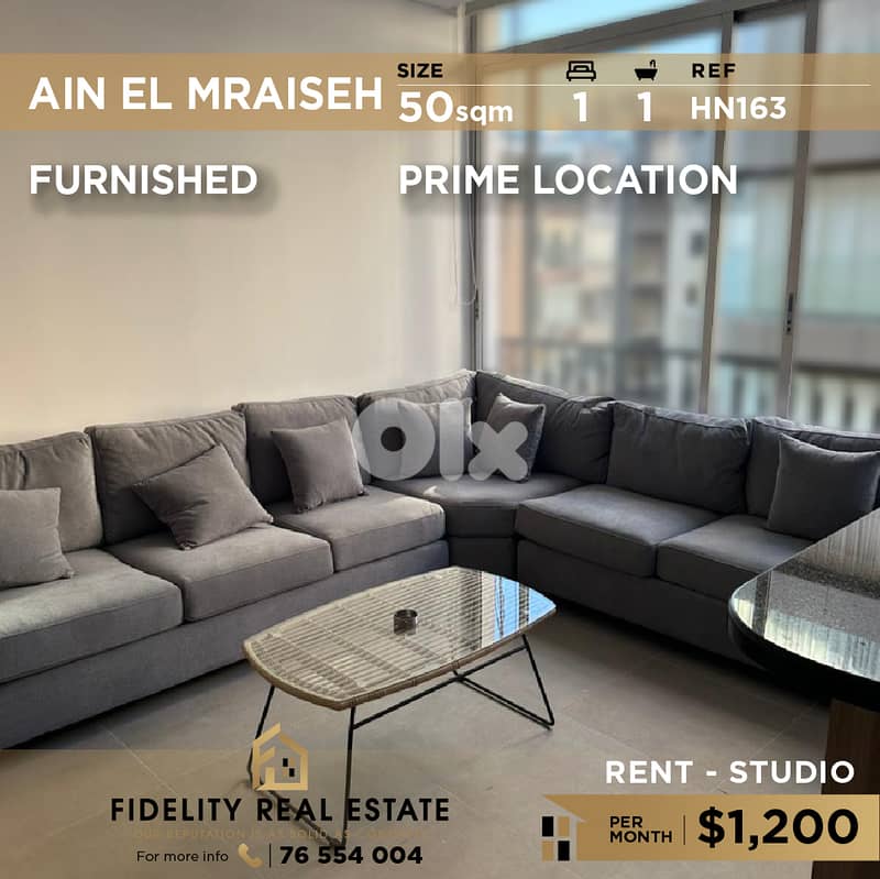 استوديو مفروش للإيجار في عين المريسة بمساحة 50 مترًا مربعًا HN163