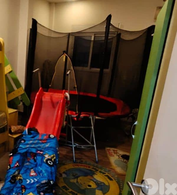 Trampoline 280cm that I bought a year ago for 280$. It's still in good condition except for multiple broken springs and detached sides of the jumping mat. Those can be bought from the original seller MJJ Sport. I no longer need it.