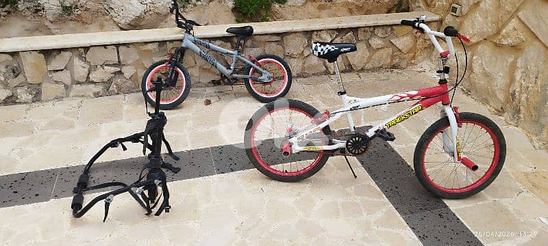 two bicycles in good condition, needs some lubricant. plus one bicycle car stand. one bicycle for up to 16 years old second bicycle for up to 10 years old