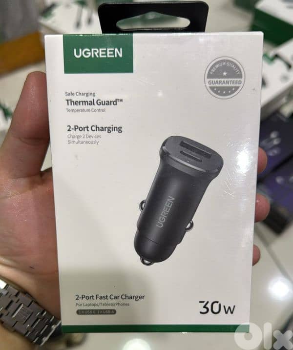 Ugreen 30w 2-port fast car charger (1xusb-c,1xusb-a) Ec305