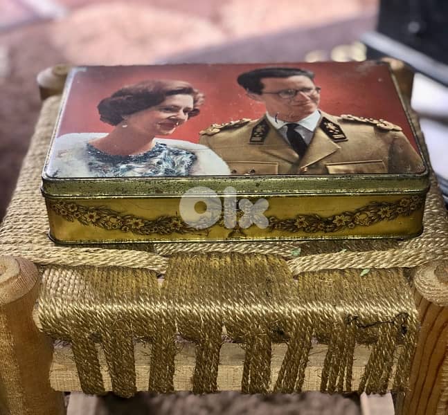 Rare tin can in honor of the Belgian royal couple Baudouin and Fabiola from the 1960s. Produced by the confectionery manufacturer Super Chocolat Jaques, Belgium collector's item With original lock.