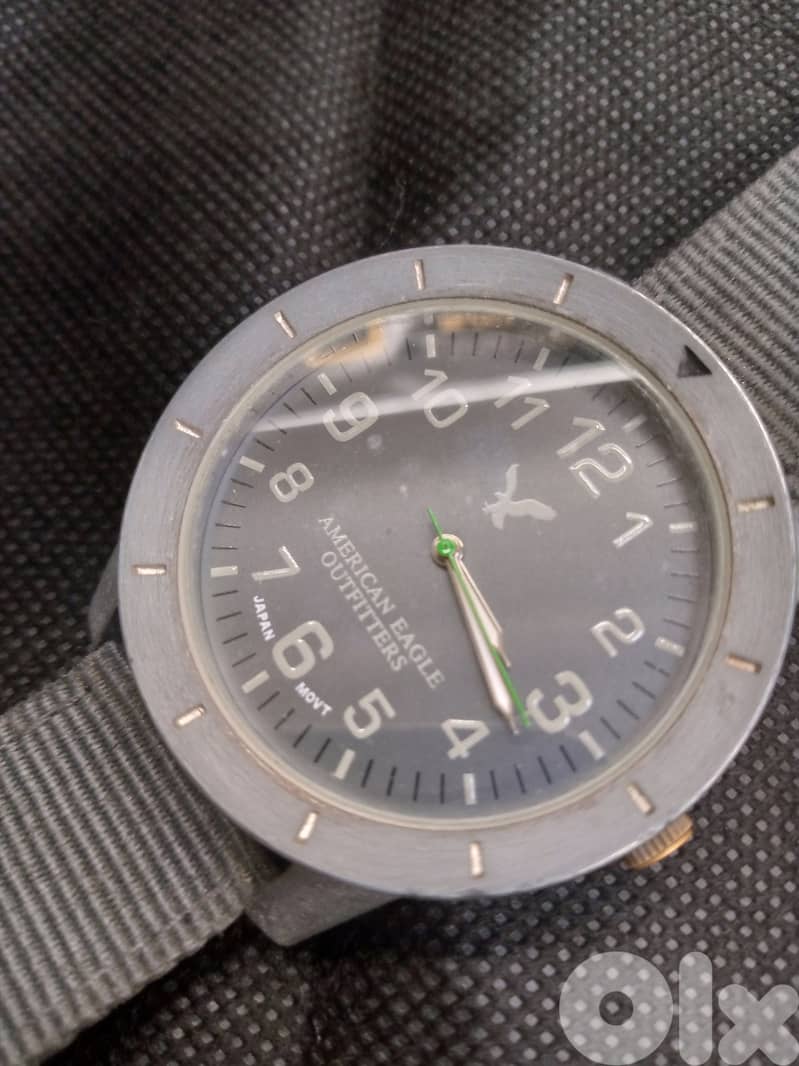 This American Eagle Outfitters men's wristwatch is a versatile timepiece suitable for casual or sporty wear. It features a green nylon two-piece strap with a buckle closure, and a round stainless steel case measuring 44mm in size. The watch has a quartz movement and an analog display with a gray dial, 12-hour dial, and seconds hand. The package does not include any original box or paperwork. However, the watch comes with a new band and battery, and it runs well. The watch is perfect for those who love a classic and timeless style.