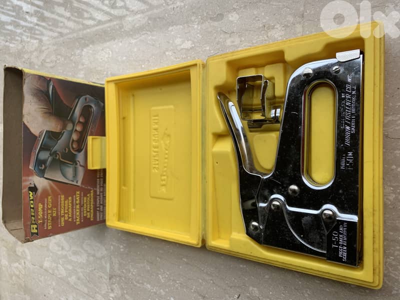 - yellow blow mold case with original cardboard wrap Vintage Arrow T-50MP Staple Gun - Original Case, Accessories, Manual.