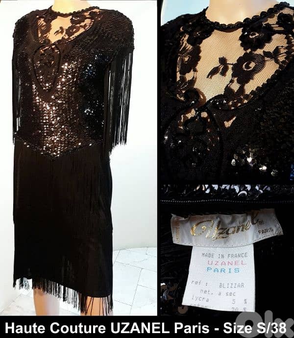 فستان هوكوتوور من المصمم الفرنسي أوزانيل - روعة التصميم والتنفيذ - قياس سمول Vintage Haute Couture UZANEL Paris 80's Dynasty Black Short Evening Dress - Made in France