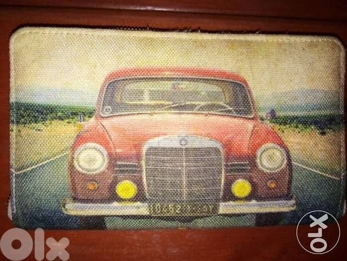 vintage ladies handbag red old mercedes 10452 plate num never used