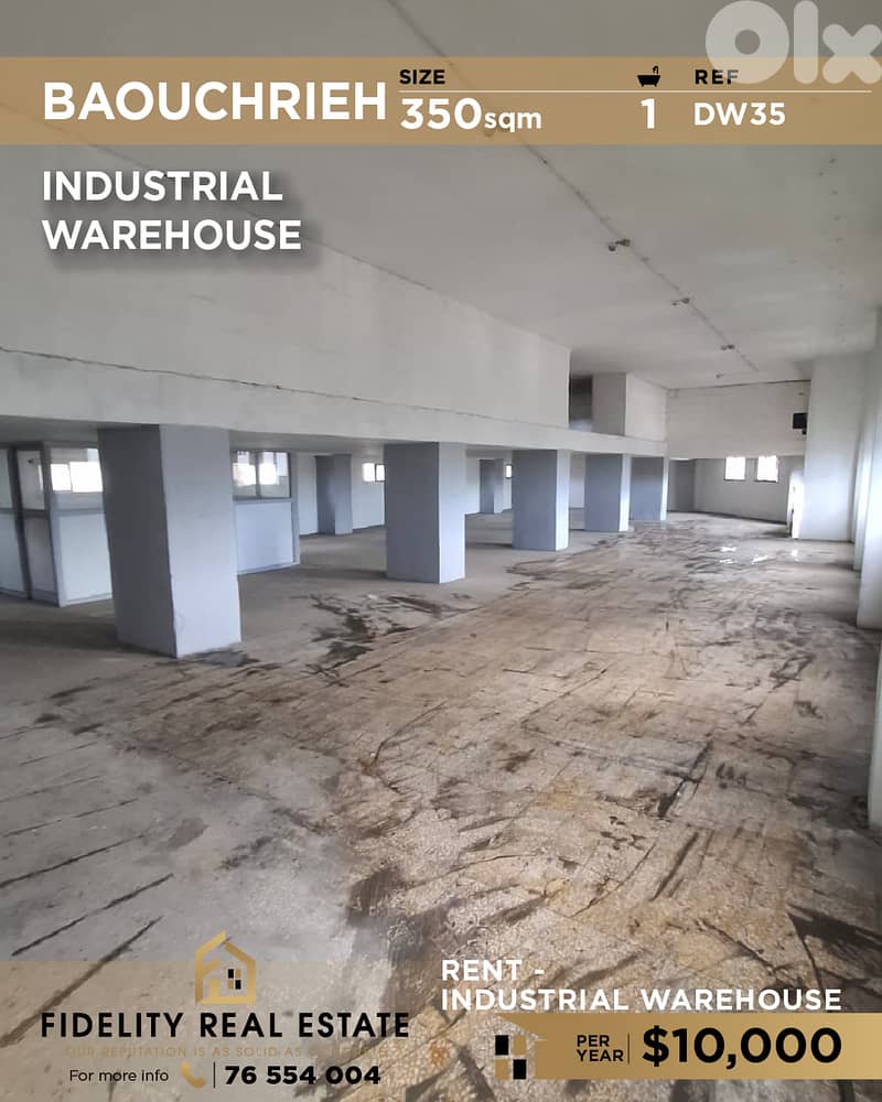 A 350 sqm Industrial Warehouse for rent in Baouchrieh -Industrial City.