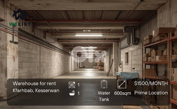 600sqm Warehouse for rent in Kfarhbab, Keserwan
