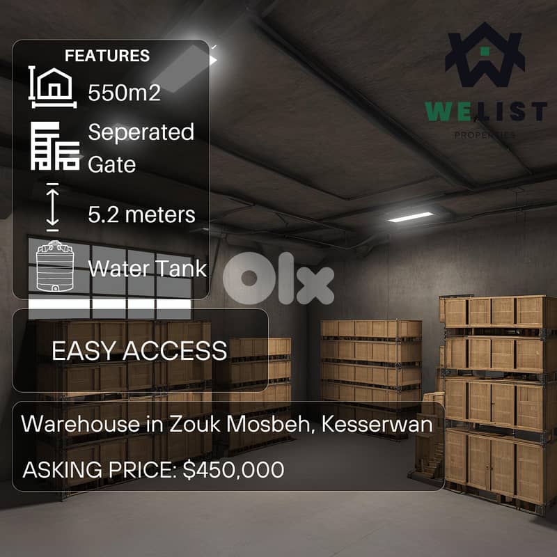 550sqm Warehouse for sale in Zouk Mosbeh ,Kesserwan