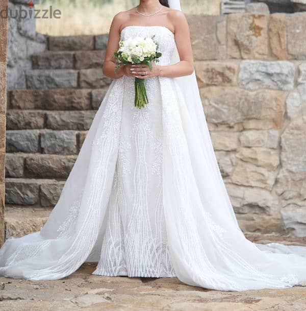 wedding dress by maison lesley. with veil and headpiece