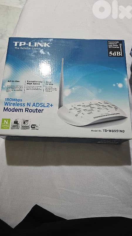 barely used, excellent condition like new 150 mbps speed, with box and cables. TD-W8951ND