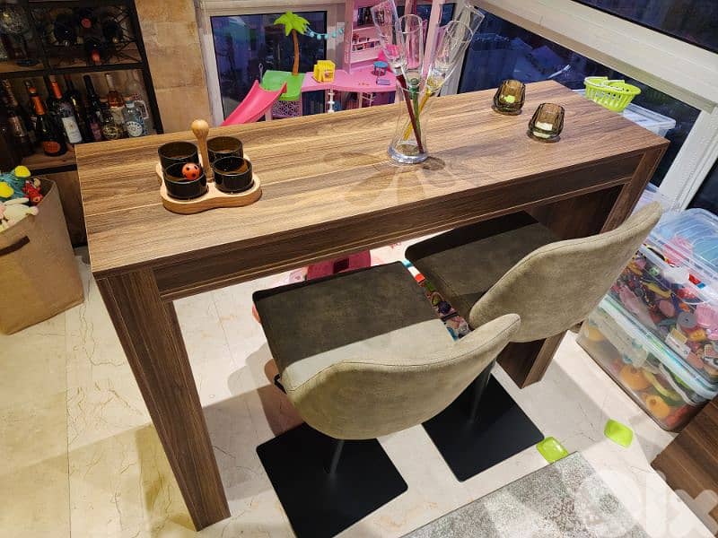 4 chairs high wooden bar